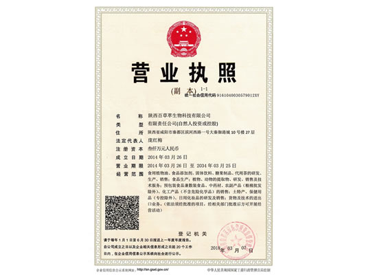 陜西百草萃生物科技有限公司,位于陜西省咸陽市秦都區(qū)濱河西路1號大秦御港城,公司成立于1996年,主要從事天然植物種植、研發(fā)、生產(chǎn)、加工、銷售為一體的高科技企業(yè)。主營醫(yī)藥原料、保健品原料、化妝品原料,精細(xì)化工原料。公司致力于人類健康保護(hù)事業(yè)“ 以科技為動力,以質(zhì)量求生存” 的本質(zhì),依托陜西高新科技技術(shù)人才和科研優(yōu)勢,已形成多學(xué)科、全方位、高層次的技術(shù)管理精英團(tuán)隊。充分利用秦巴山區(qū)的天然藥物資源,歷經(jīng)多年發(fā)展為打造百草萃生物品牌奠定了基礎(chǔ)。